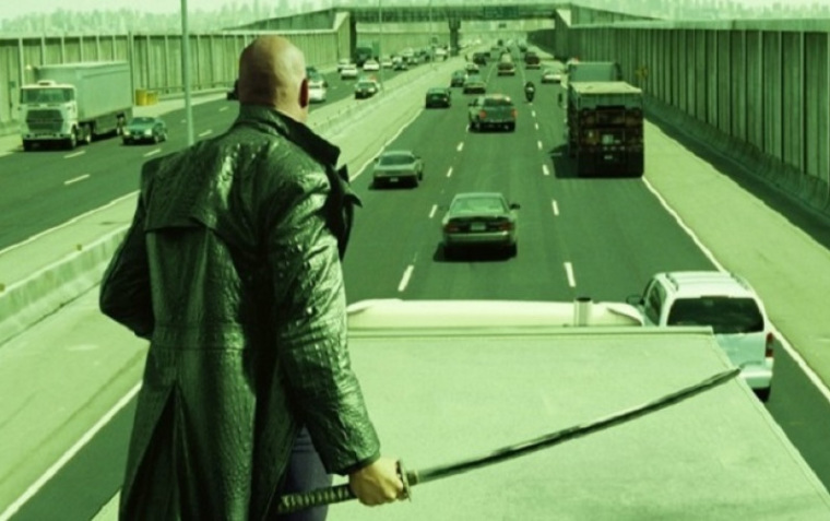 2. "Матрица: Перезагрузка", 2003 — шоссе. Сцена из фильма "Матрица: Перезагру"" с погоней на оживленном шоссе была настолько сложной, что на ее съемки было необходимо потратить 3 недели.
