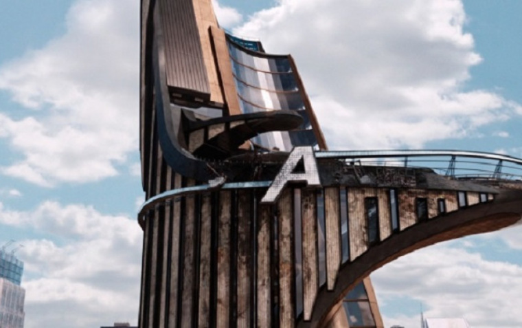 Для съемок фильма компания создала самую впечатляющую декорацию — штаб супергероев, башню с внутренними съемочными локациями и лифтом.