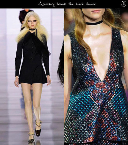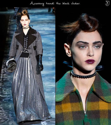 Эти украшения включили в свои коллекции уже многие дизайнеры, среди них Valentino, Lanvin Michael Kors. Чокер можно выбрать в этническом стиле (из разноцветных бусин) либо в стиле глэмрок (он представляет собой рок-стиль, но с включенными в него гламурными деталями).