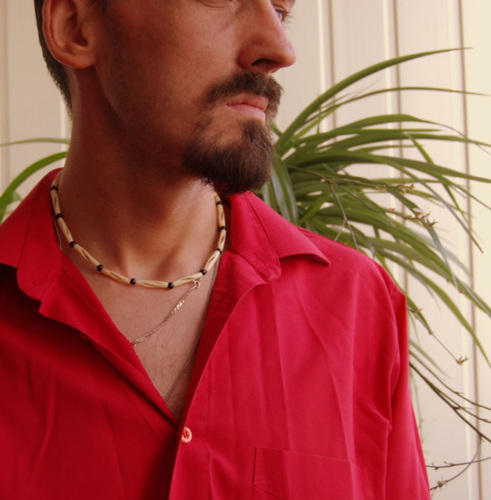 Чокеры прекрасно сочетаются с такими стилями в одежде как индейский, ковбойский, этно, сафари, рокерский, бохо, кэжуал и хиппи. Особенно гармонично украшение смотрится с замшевой и кожаной одеждой. Отлично подойдет чокер и к наряду из льна. Чаще всего чокеры в этническом стиле изготавливают из таких натуральных материалов как кость, рог, каучук или кожа. Кстати, именно из каучука и кожи изготавливаются многие мужские модели чокеров.