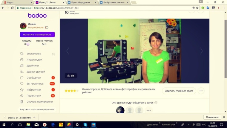 Всем доброго дня! Я - лингвист. Не могу не обращать внимание на то, что и как пишут мне в своих сообщениях мужчины, желающие со мной либо пообщаться, либо познакомиться или встретиться в реале. На этом сайте знакомств я присутствую с 23 июля. Пока что никто из тех, кто написал мне сообщения, не показался мне интересным собеседником. Проблема многих мужчин состоит в том, что они не соответствуют уровню запросов женщин даже в самом малом - умению общаться. Самое ценное, что у нас есть - это наше время. И тратить его на разговоры ни о чём - скучно и бесперспективно. Уважаемые мужчины, учитесь говорить и писать по-русски правильно. И тогда, понравившаяся Вам женщина, будет Ваша. Ведь общеизвестно, что "Мужчины любят глазами, а женщины - ушами". Успешного всем общения на этом замечательном сайте знакомств. У него очень удобный интерфейс, масса возможностей узнать мужчинам и женщинам друг друга по-лучше. С уважением, Ирина.