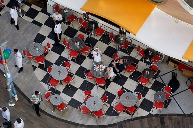 Другая зона - прогулочная Boardwalk, затем идут Королевский Променад с уникальным панорамным мезонином, зона спортзалов и бассейнов, зона фитнес и SPA, детская зона и зона развлечений.