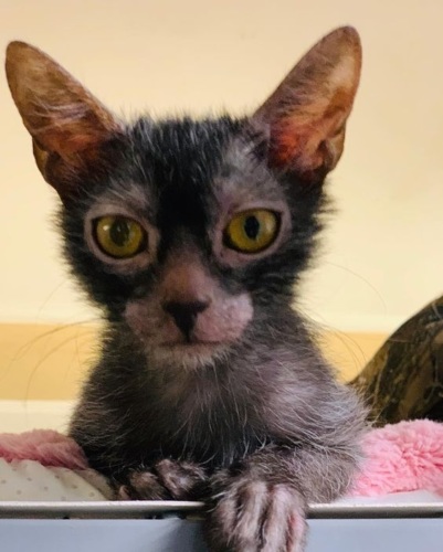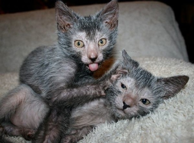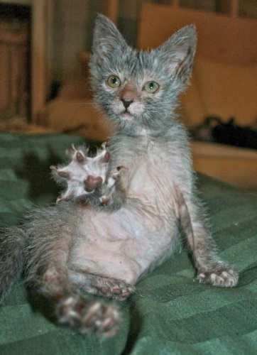 Иногда так бывает, что селекционеры, желая вывести новую породу кошек, сами оказываются не готовы к полученному результату. Именно так и случилось в 2010 году, когда заводчиками была скрещена американская короткошерстная кошка со сфинксом. Предполагалось, что котята от такого брачного союза родятся лысыми, но унаследуют от короткошерстных американцев крепкое и округлое телосложение. Но на свет появились странные малыши, частично покрыты короткой шерстью, чем привели заводчиков в замешательство.