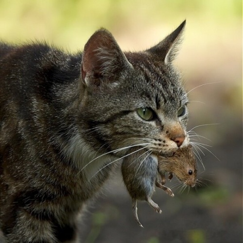 Кошки могут часами сидеть в засаде, поджидая момент, когда жертва приблизится к ним на расстояние одного прыжка. После чего и происходит моментальный прыжок, в конце которого кот вцепляется зубами в горло своей жертвы.При этом он себе помогает когтями всех четырех лап.