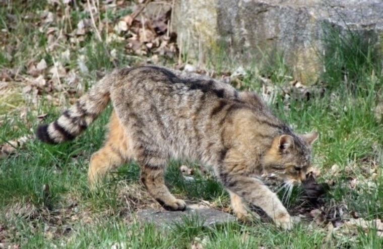 Европейская дикая лесная кошка обладает сероватой шкурой сдлинными темными полосками вдоль позвоночника. Среднеевропейский лесной кот, как видно из названия, обитает вЕвропе, а также встречаются на Западной Украине и Кавказе. Места обитания - преимущественно лесные массивы и невысокие горы.