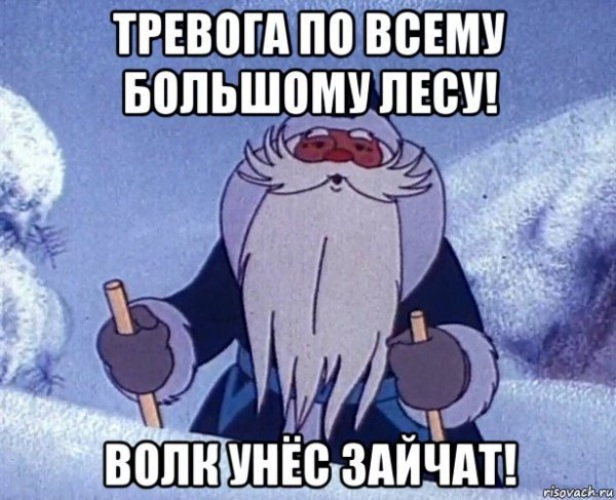 Моя четырёхлетняя дочка посмотрела мультик "Дед Мороз и серый волк". Ну, там где "Тревога, тревога, волк унёс зайчат!".