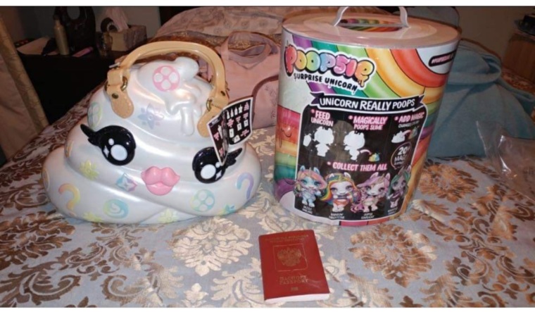 Перечитали? Да. А бонусом, ну, то есть, второй вещью, необходимой ребенку, оказалась пластиковая дамская сумочка в виде... догадались, да? ГОВНА ЕДИНОРОГА.