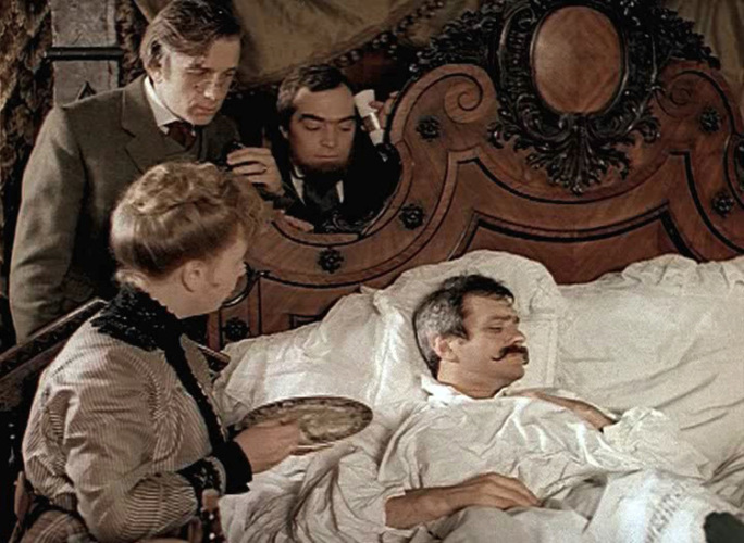 — Виталий Соломин очень ревностно относился к тому, что кого-то другого снимают крупным планом, а не его, — рассказывала Крючкова. — Снимали сцену в башне, когда Бэрримор подает знак моему брату, и я врываюсь, чтобы его защитить. Шандал со свечами был в руках у Соломина, и он меня все время поворачивал спиной к оператору. Михалков подошел и мне на ушко говорит: "Ты на репетиции не спорь с Соломиным, подчиняйся, а будет съемка, так ты войди и возьми у него из рук этот шандал". Я так и сделала. Соломин растерялся, спросил: "Значит, убийца Селден — ваш брат?" Я повернулась на Соломина, то есть спиной к оператору, а потом вдруг развернулась к Михалкову, который хозяин, ответила: "Да, сэр" — и сказала свой монолог на крупном плане.