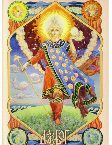 В "Слове о полку Игореве" Даждьбожьи внуки - русские, покровителем и родоначальником которых считалось это светоносное божество. Некоторые ученые растолковывают слово "славянин" как "происшедший от солнца", "потомок солнца".