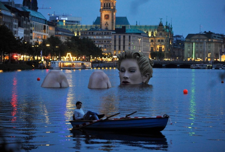 В самом центре озера Альстер в Гамбурге расположилась интереснейшая скульптура. Миловидная блондинка весом без малого 20 тонн и высотой четыре метра была возведена в августе 2011-го года и стала одной из главных достопримечательностей города. С момента своего появления Badenixe пользовалась ошеломляющим успехом среди туристов и местных жителей. Эта каменная девушка (кстати просто кукольной внешности) сидит в такой позе, будто решила искупаться в озере Альстер. Ее "отцом" является Оливер Восс, который сотрудничал с косметической фирмой Soap & Glory.