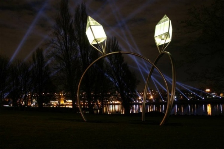Одна из самых оригинальных достопримечательностей Ванкувера. Кольца сделаны из стали, алюминия и стекла. Они расположены под углом, и кажется, будто бы вот-вот потеряют равновесие. На самом деле "Обручальные кольца" плотно "сидят" на своем основании, символизируя прочность брачного союза.