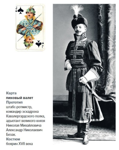 А пиковый валет — это штабс-ротмистр, командир эскадрона Кавалергардского полка, адъютант великого князя Николая Михайловича Александр Николаевич Безак в костюме боярина XVII века.