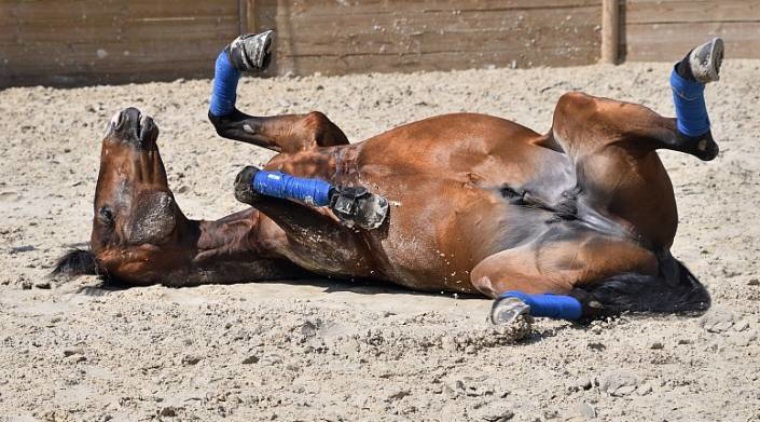 Существует и другая версия — лошади катаются по земле, чтобы на них не надевали седло или хомут. Этот вариант излагает "Словарь русской фразеологии".