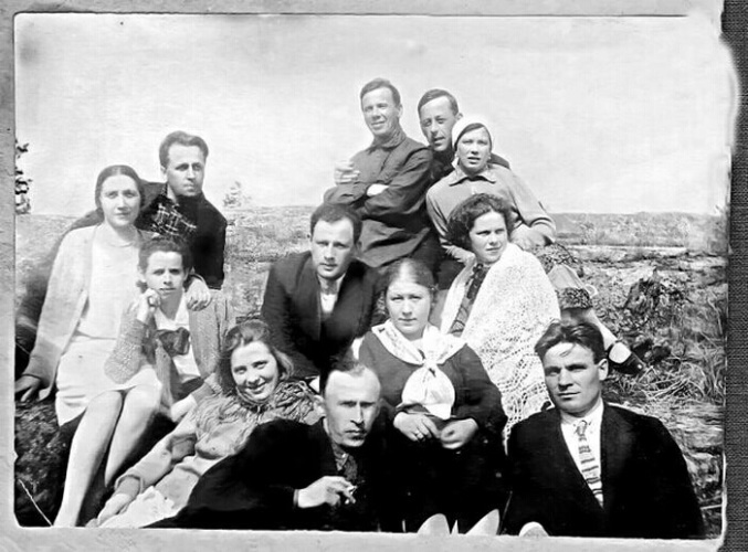 Екатерина Максимова - крайняя слева (вверху) - с друзьями и знакомыми на загородной прогулке. Петрозаводск. 1930 год. / Фото: из архива Натальи Васильевны Ларцевой