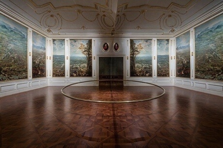 Окно салона выходит на внутренний овальный двор. Здесь могли находиться приближенные к монарху особы или титулованная знать, чтобы понаблюдать за королевскими апартаментами через отверстие, которое по форме напоминает бычий глаз.