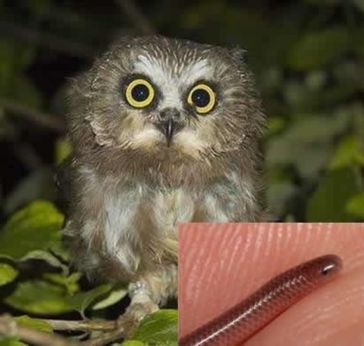 Это очень маленькие змейки, которые обитают под землей, но совы выуживают их из-под земли и заботливо перекладывают в свои гнезда.