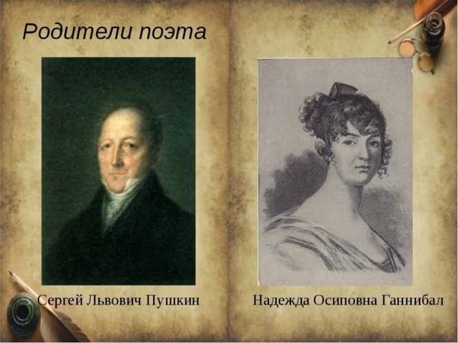В 1796 году она обвенчалась с Сергеем Львовичем Пушкиным. Этот брак, заключенный по великой любви, называли мезальянсом — ведь она была внучкой самого Абрама Ганнибала, правой руки Петра Великого, и потомком известного дворянского, пусть и обедневшего рода. А он — поручик артиллерии второго ранга. Впрочем, они состояли в родстве — Надежда Осиповна доводилась своему супругу... внучатой племянницей.