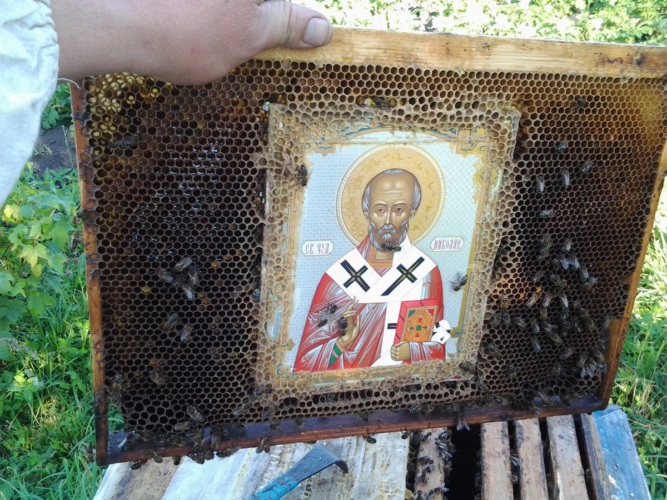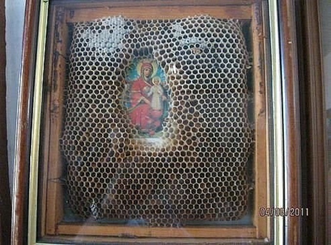 В Греции, в регионе Капандрити, возле Афин, набожный пасечник по имени Исидор Тиминис задумал в один из своих ульев поместил икону распятого Господа, когда он это сделал и открыл через время улей, то увидел, что пчелы оказали столько почтения иконе, украсив ее сотами, оставив открытыми только образ Господа, то же происходило с другими иконами!!!! А на иконе распятия, непокаявшегося разбойника покрыли толстым слоем сот, а покаявшегося оставили вместе с крестом!!!!