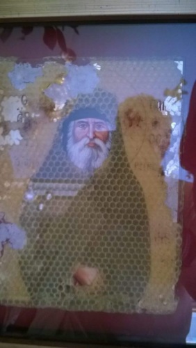На Святой Горе Афон пчелы пробравшись в старый храм, стали возводить соты на иконах, но при этом не закрыли лики в образах!