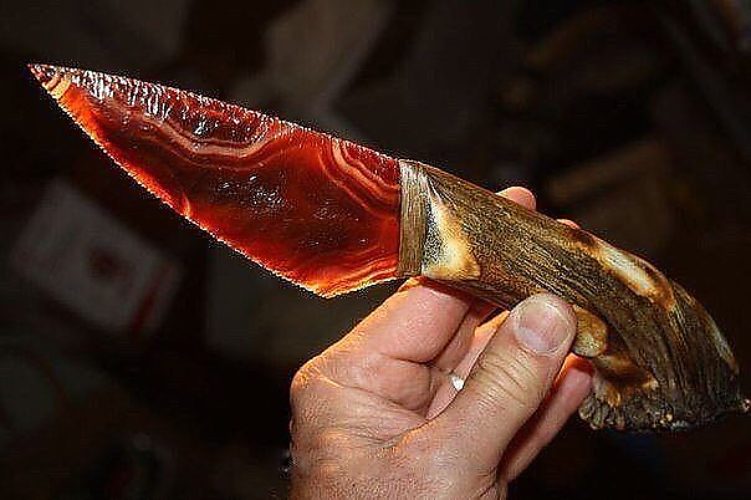 Нож из рога и вулканического стекла.