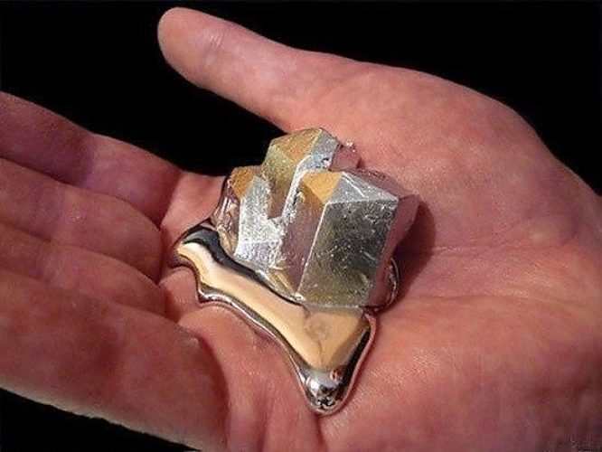 Галлий - метал, имеющий температуру плавления 29,8 градусов. Если взять его в руку, он начнет плавиться.