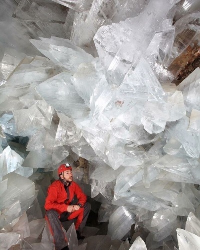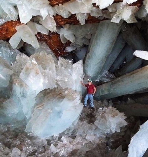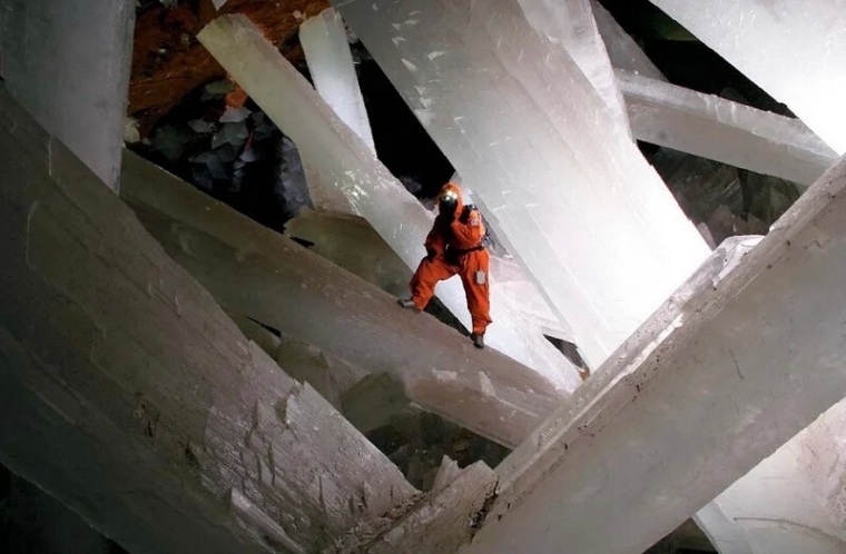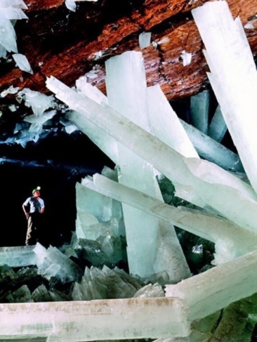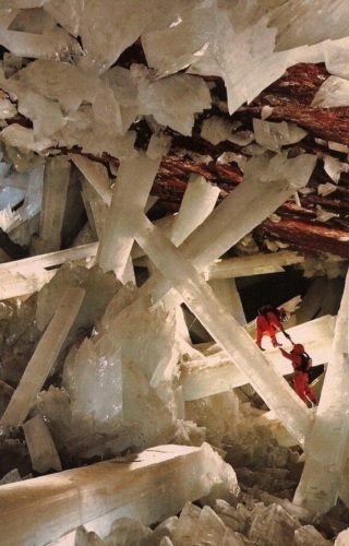 Пещера кристаллов (Cueva de los Cristales) - природное образование в мексиканском городе Найка, штат Чиуауа, лежащее на глубине более 300 метров под землей. Ее уникальность представлена переплетениями огромных прозрачных кристаллов селенита (кристаллическая разновидность гипса), достигающих рекордных размеров. Гигантские формирования несколько сотен тысяч лет находились и росли в заполненной водой подземной полости. Геологи называют данное нерукотворное мексиканское чудо "Сикстинской капеллой кристаллов", тем самым намекая на ее красоту и уникальность.