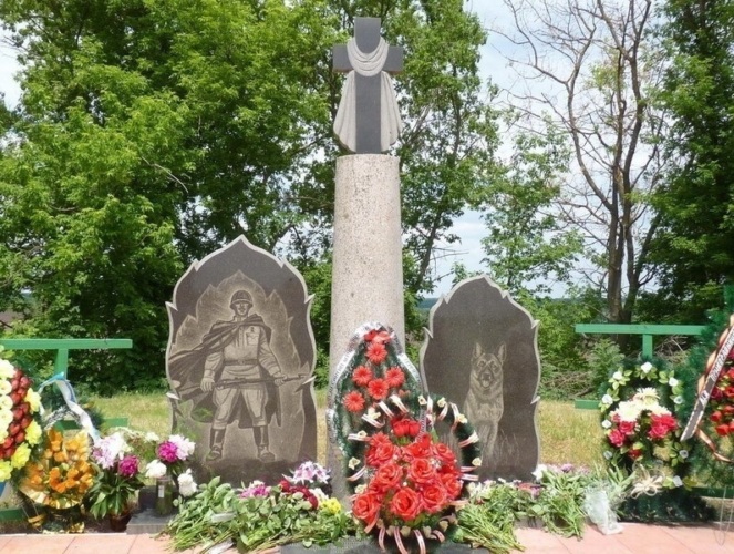 После того боя, когда немцы собрали своих погибших, повоспоминаниям жителей села, было разрешено похоронить советских пограничников. Всех, кого нашли, собрали в центре поля и похоронили, вместе со своими верными четвероногими помощниками, а тайну захороненияспрятали на долгие года...