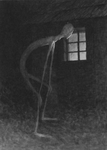 Жердяй достаточно жуткий, но не путайтете его с жирдяем. Жердяй от слова жердь, то есть смысл этого слова имеет совершенно противоположный. В славянской мифологии жердяй выглядит очень длинным, настолько, что может греть руки в печной трубе и худой как ветвь дерева. Похожий на человека дух, который слоняется по ночным улицам и пугает людей. Так и ходил жирдяй один по улицам и и подкрадываясь к окнам домов заглядывал в них, наблюдая за людьми. Бывало стучал в окно словно ветка дерева.