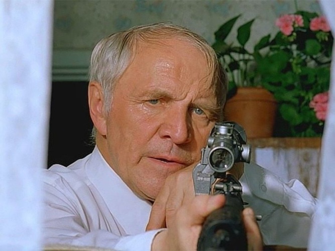 Все, конечно, смотрели кинокартину Станислава Говорухина "Ворошиловский стрелок", в которой ветеран войны, пенсионер Афонин, великолепно сыгранный Михаилом Ульяновым, разочаровавшись в органах правопорядка, сам мстит трем подонкам, изнасиловавшим его внучку.