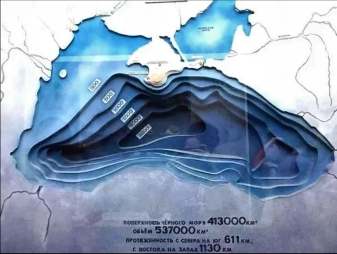 Есть гипотеза, что Черное море - это искусственный карьер по добыче каких-то полезных ископаемых, который позднее просто заполнился водой.