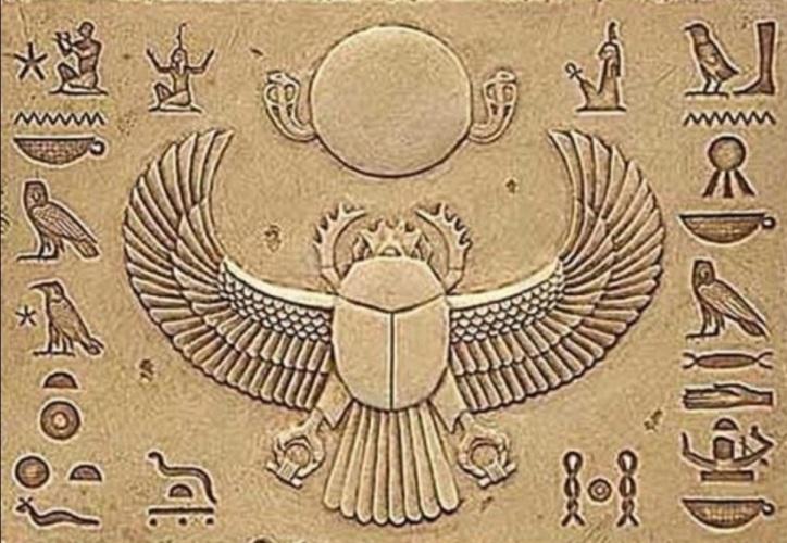 По представлениям древних египтян солнце являлось божеством, несущим жизнь всему живому и воскресение после смерти. Цикл развития скарабея внутри навозного шарика и его выход весной на поверхность земли египтяне соотносили с движением солнца.