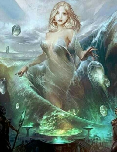 С тремя стихиями определились легко: бог огня Семаргл, бог ветра Стрибог и мать сыра земля. Но вот вода... Она разлилась необъятно, заполнила все низины, образовала целый океан-море, а ещё подводные и наземные реки, озёра и облака в небе. И тогда Род издал указ - быть в воде многим духам - морскому царю, водяным, русалкам... Многие из этих мифических существ известны нам и сегодня. Девушка-река по имени Агидель тоже относится к их числу. Она в трудный час спасала землю от дыхания аспидов и небесного жара. И где бежала вода, там зеленели травы и леса. Взлетала Агидель высоко и, закрывая весь небосвод своими сизыми крыльями, посылала на землю благодатный дождь. И плескались в водоемах рыбы, колосились поля, зацветали сады, а птицы певчие свои песни распевали. Всей земле с появлением Агидель являлась радость! Вот какой была эта богиня.