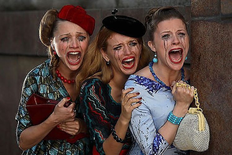 Стоят девчонки, стоят в сторонке, платочки в руках теребят... Потому что на десять девчонок, по статистике: — 3 голубых, 4 алкоголика, 2 разведенных, 2 наркомана и 1 нормальный, но он женат...