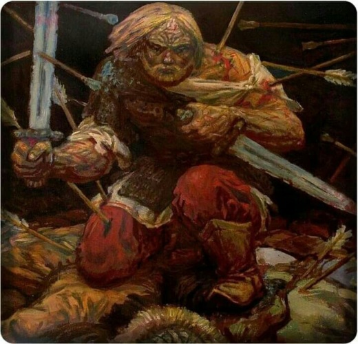2 — Русский воевода Евпатий Коловрат спешил с 1500 отрядом на помощь Рязани, осажденной Батыем... Не успел... Оглядев пепелище, он принял решение вступить в бой со вражеским арьергардом и разгромил его на голову. Когда Батыю донесли о нападении,он послал воинов (тумен) закрыть вопрос. Русские устояли. Батый послал второй тумен. Русские опять устояли. Пораженный доблестью витязей,он предложил им деньги и должности. Они ответили: "Нет". — "Чего же вы хотите?" — спросил Батый. "Мы хотим умереть", — ответила дружина Коловрата.