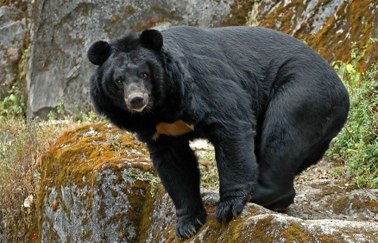 3. Гималайский медведь. По величине почти вдвое меньше бурого и отличается от него более стройным телосложением, тонкой остроносой мордой, большими округлыми ушами. Самцы этого вида 150—170 см длиной, высота в холке около 80 см, весят 120—140 кг. Самки заметно мельче.