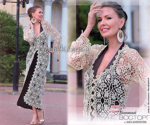 Petelki.com.ua " Схемы вязаных пальто, кардиганов, жакетов " Шазюбль из квадратных ажурных мотивов. Описание, схемы