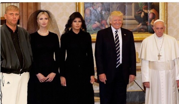 Благодаря контрастной внешности человека, который все еще живет в 90х, фотожабы со "свидетелем" заполонили сеть. Его фигура гармонично смотрелась, как на Ялтинской коференции, в компании с Черчиллем, Рузвельтом и Сталиным, так и на презентации очередного айфона с Тимом Куком.