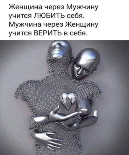 Я бы поправила. Женщина через пару учится любить себя. А мужчина через маму учиться вернуть а себя потом по цепочке переходит . Хотя мужчине здоровому нужна женщина которая уже умеет себя любить . А здоровой женщине подтягивается мужчина который верит в себя уже. Только где вы этих здоровых видели ?)) Люди соединятся по своим травмам