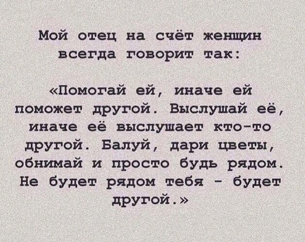 Главное, ничего не сказано о её обязаностьях в отношении мужчины. "Отец" явно был тряпкой по жизни.)))