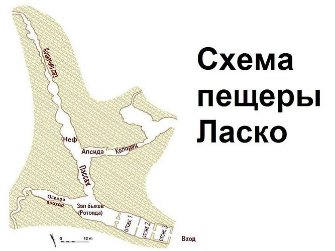 Пещера Ласко и доисторическая живопись Древние люди знали толк в живописи. Особенно хорошо это иллюстрирует пещера Ласко во Франции (Grotte de Lascaux). Главная особенность этого места тысячи наскальных рисунков на сводах пещеры, причем большинство из них выполнены с потрясающей реалистичностью. Древние люди вполне неплохо рисовали. Где находится пещера Ласко Она лежит в 1 километре южнее городка Монтиньяк, недалеко от реки Везер в юго-западной части Франции, в регионе Перигор. Географические координаты 45.053796, 1.168155 История открытия Пещеру нашли в сентябре 1940 года четверо подростков из близлежащего поселения Монтиньяк. Она так и оставалась бы скрыта под поверхностью Земли, если бы однажды, во время грозы, от удара молнии не упала сосна. Она то и приоткрыла любознательным ребятам небольшой проход внутрь. Мальчишки, конечно же, полезли в пещеру и обнаружили множество древних наскальных рисунков. Об этом они сообщили своему учителю, и с тех пор это место под пристальным вниманием ученых. Одна из ранних фотографий Структура пещеры Ласко, расположенная в холме известняковых пород, отличается от большинства пещер данной местности тем, что она довольно сухая. Массивные мраморные слои предотвращают попадание влаги извне, поэтому здесь не образуются отложения кальцитов. Другими словами, вы не найдете в этой пещере тысячелетних сталактитов и сталагмитов, как, например в известной Пещере Тростниковой Флейты в Китае. Пещера Ласко имеет относительно скромные размеры и разветвленную структуру. Хотите увидеть действительно большую пещеру? Отправляйтесь в Пещеру Шондонг в Китае. Если прямо сейчас у Вас не получится туда попасть, то хотя бы почитайте о ней. Общая длина проходов пещеры Ласко порядка 250 метров. Высота сводов в среднем 30 метров. Объем всей пещеры оценивается в 1500 м3 Рисунки в пещере Ласко Здесь тысячи рисунков, которые разделяются на 3 категории: животные, люди и символы. Большинство изображений сделано красным, желтым и черным цветами из сложного многообразия минеральных пигментов. Конечно же, не все рисунки сохранились так хорошо Одни рисунки сохранились идеально, другие же повреждены или полностью уничтожены. Сейчас порядка 900 из них относятся к животным (среди них 364 лошади и 90 оленей). Животные показаны не статично, а в движении. Стада лошадей, могучие быки и плавные, грациозные представители кошачьих, бизоны и даже носороги, все они застыли в неуловимом порыве и готовности к атаке. Однако в пещере нет изображений растений или природных ландшафтов. Некоторые ученые предположили, что рисунки показывают древнюю звездную карту с созвездиями. Другие считают пещеру святилищем или культовым местом для древних людей. Интересный факт: многие доисторические картины сохранились настолько хорошо, что трудно поверить в их возраст. Этот феномен объясняется наличием на сводах своеобразной прозрачной корочки отложений кальцитных солей. Она защищает изображения подобно лаковому покрытию. Не менее интересна Пещера Альтамира в Испании. Там рисунки сохранились настолько хорошо, что сначали их посчитали подделкой. Зоны пещеры Ласко Ученые формально разделяют пещеру на отдельные участки. Зал быков Иногда его называют Ротонда. Протяженность этого отрезка 17 метров, ширина 6 метров, высота до 7 метров. Здесь находятся изображения четырех огром