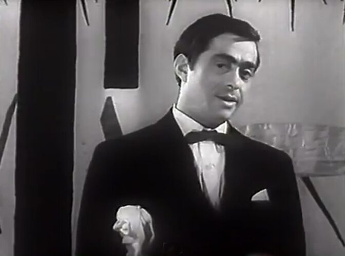 Актер Роман Карцев в спектакле Московского театра миниатюр Хармс! Чармс! Шардам! или Школа клоунов в постановке Михаила Левитина по произведениям Даниила Хармса. 1985 год.
