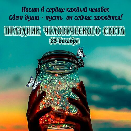 Праздник человеческого света или Humanlight отмечают представители светского гуманизма - мировоззрения, которое провозглашает наивысшей ценностью человека и его право на счастье, развитие и проявление своих положительных способностей. Этот праздник приходится на 23 декабря. Гуманизм - система построения человеческого общества, где высшей ценностью является жизнь человека, его право на самоопределение и свободное волеизъявление.
