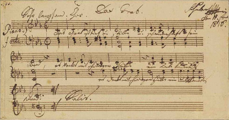 В отличие от Моцарта, Шуберта похоронили в отдельной могиле. Правда, заплатить за столь пышные похороны пришлось деньгами от продажи его рояля, купленного после единственного большого концерта. Признание к нему пришло посмертно, причем значительно позднее через несколько десятков лет. Дело в том, что основная часть сочинений в нотном варианте хранилась у друзей, родственников, в каких-то шкафах за ненадобностью. Известный своей забывчивостью Шуберт никогда не вел каталога своих произведений (как Моцарт), не пытался их как-то систематизировать или хотя бы держать в одном месте.
