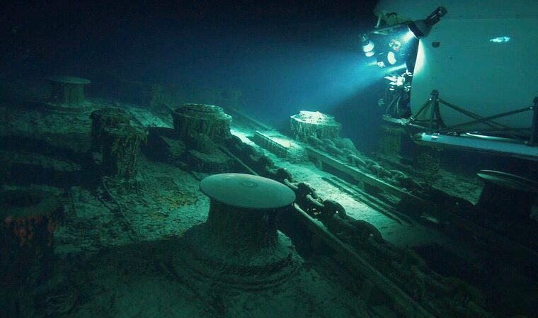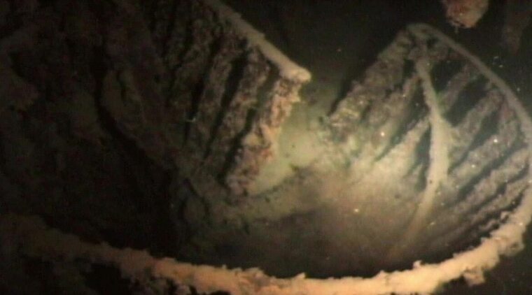 Около 02:15 нос "Титаника" резко опустился, судно значительно сдвинулось вперед, и по палубам прокатилась огромная волна, которая смыла многих пассажиров за борт.