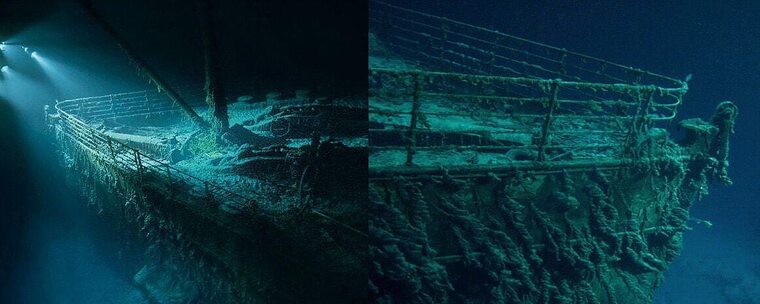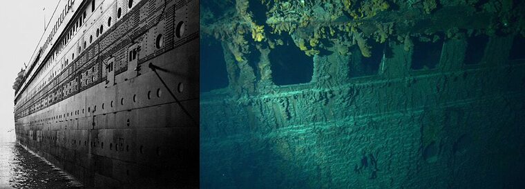 В 23:40 "Титаник" столкнулся с айсбергом в подводной части судна. Из 16 водонепроницаемых отсеков судна шесть были прорезаны.