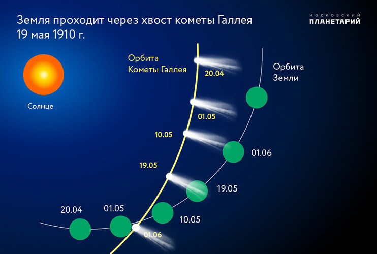 Необычный астрономический юбилей 19 мая: 110 лет назад 19 мая 1910 года Земля пролетела сквозь хвост кометы Галлея!