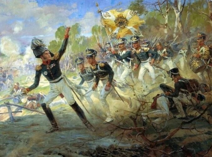 4. Подвиг солдат генерала Н.Н. Раевского под Салтановкой 11 июля 1812 года - Н. Самокиш (позади генерала Раевского изображены его сыновья).