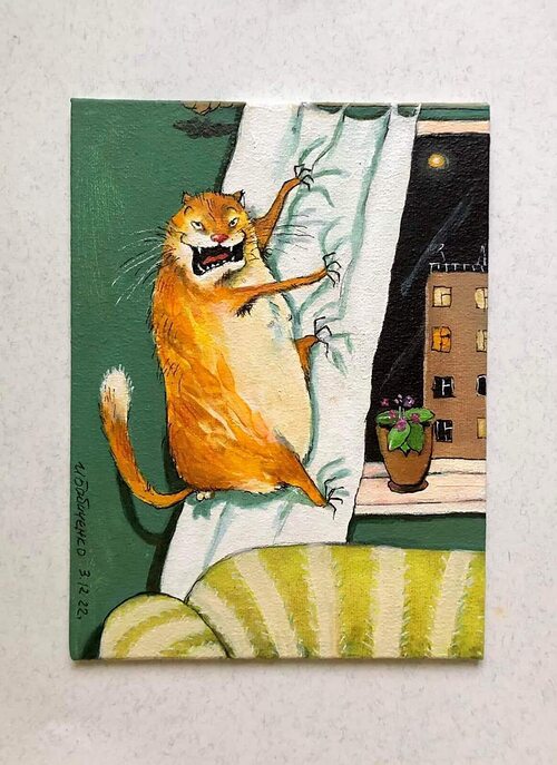 Впрочем, зачем годить? Той же ночью и поквитались. Я уже как-то рассказывал, что у Камасутренков имелся огромный черный кот Черчилль. Балбес редкостный, но за кильку в томате душу продаст. Вот я ему обмен предложил банку кильки за котиарт. Он и согласился. Заработанную банку он честно сожрал и почапал домой. Его мадам позвала ужинать. Ну, пока светло, кот, как кот. А потом Короче, погасила мадам Камасутренко свет и только они спать собрались, как