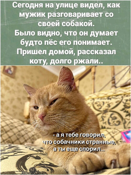 Рассказала коту анекдот ,что собаки все понимают,тоже поржали.