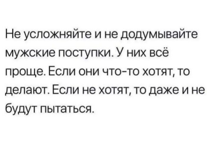 Анна, И здесь речь не о поддержке женщиной своего мужчины, а о том, как женщины очень часто придумывают тысячи оправданий мужчине, которому она не интересна, становится жертвой для него :"Не позвонил день два три, ой он просто занятой."